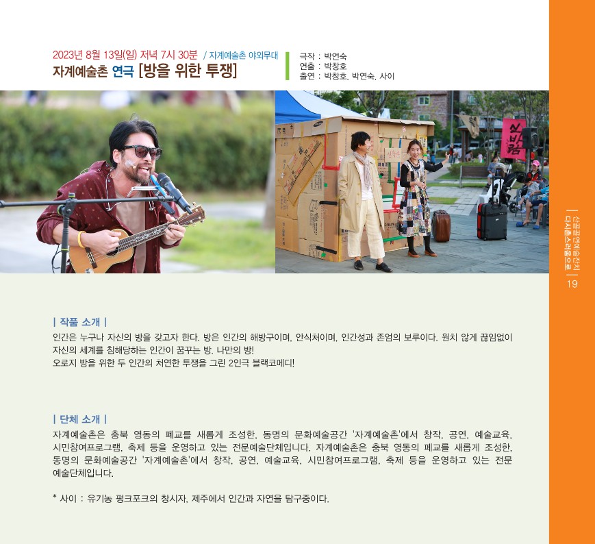 2023³â 8¿ù 12ÀÏ(Åä) ~ 13ÀÏ(ÀÏ) Àú³á 7½Ã / Àڰ迹¼úÃÌ °¨¹ÙÀ§ÀÛÀº¹«´ë & ¾ß¿Ü¹«´ë